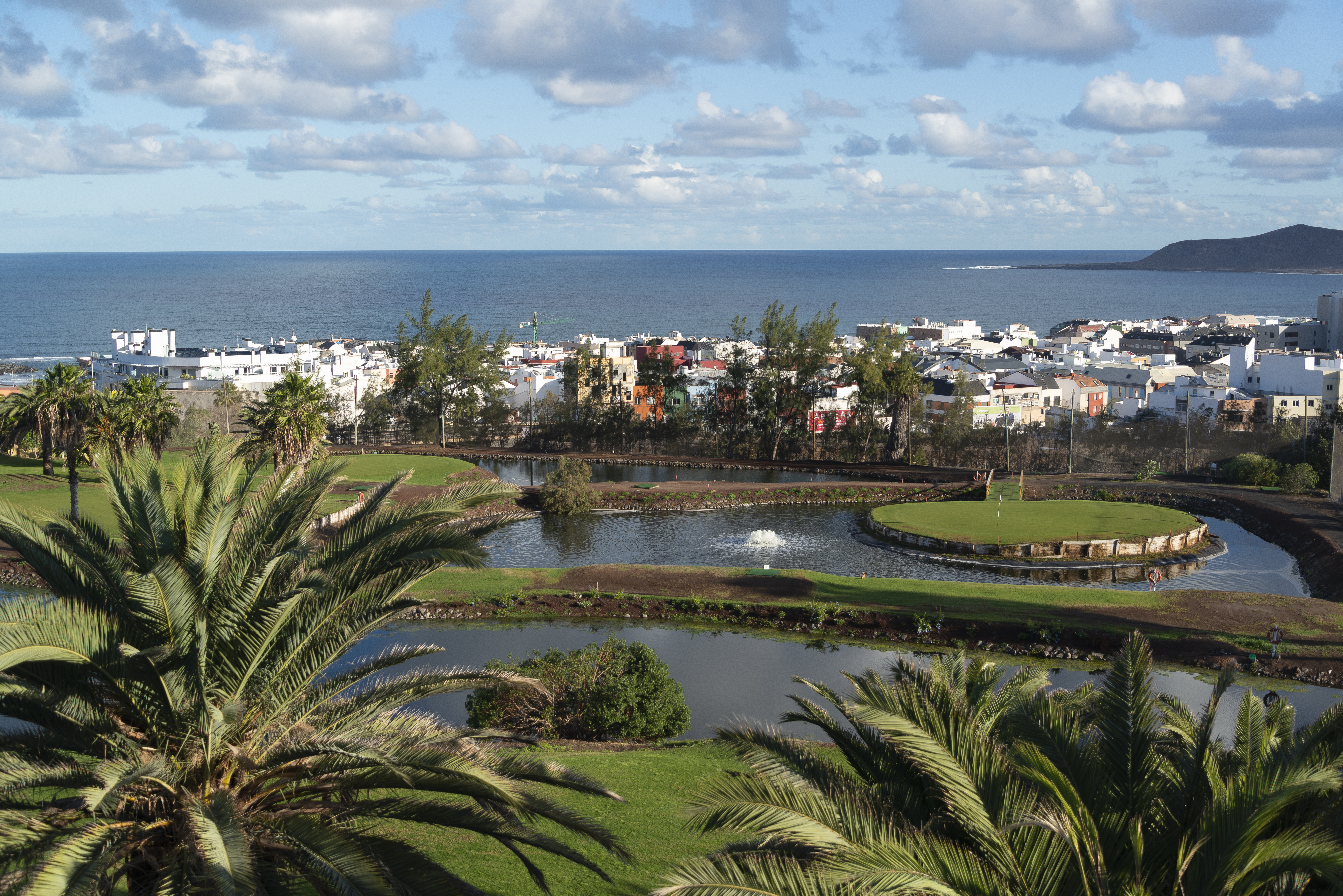 Inicio de obras de reparación en el green del hoyo 15,